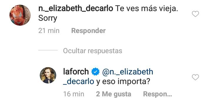 A pesar de los buenos comentarios, algunos aseguraron que la actriz lucía de más edad. a lo que ella respondió con un rotundo mensaje, que eliminó a los minutos. Puedes revisarlo a continuación: