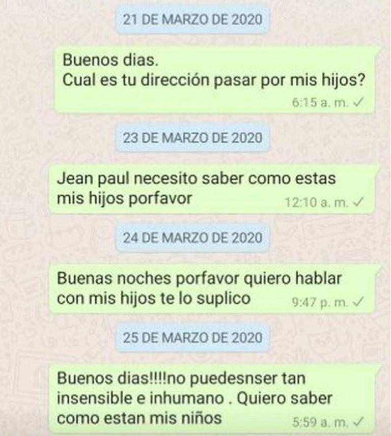 La ex chica reality mostró los mensajes de WhatsApp que tiene con su ex y el padre de sus hijos, quien no la dejaría ver a los niños.
