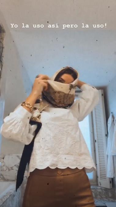 "En la recepción del hotel tenían mascarillas. Mis defensas bajaron un toque. Voy a hacerlo un poquito más fashion", dijo en Instagram mientras mostraba cómo darle un toque de moda al uso de la mascarilla.