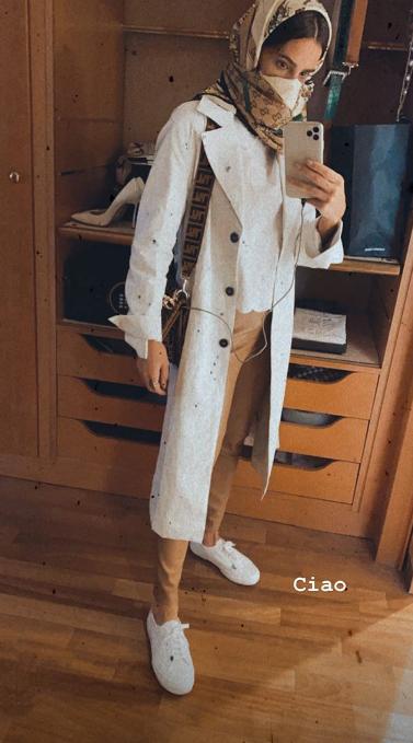 Aylén Milla muestra una forma fashion de usar mascarilla desde Milán