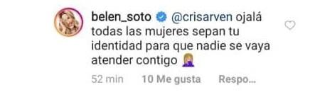 Esta denuncia, además, incluía pantallazos que dejaban en evidencia los insólitos comentarios que este sujeto le dejaba a Belén Soto en las fotos que subía a su cuenta de Instagram.