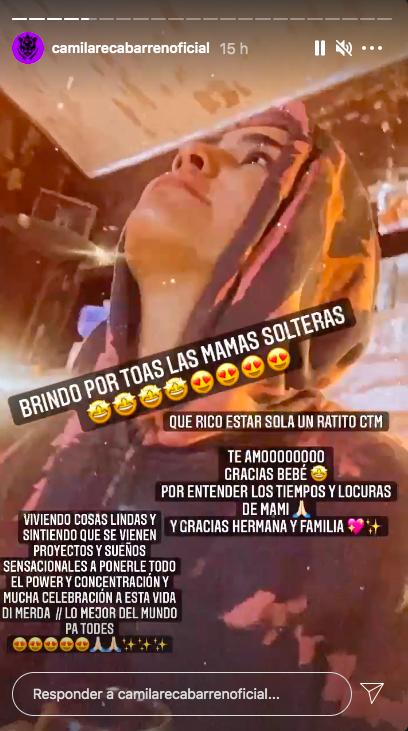 Así lo demostró a través de stories donde decidió hacer un brindis por las madres solteras. "Brindo por todas las mamás solteras", escribió junto a un video donde la vemos cantando.