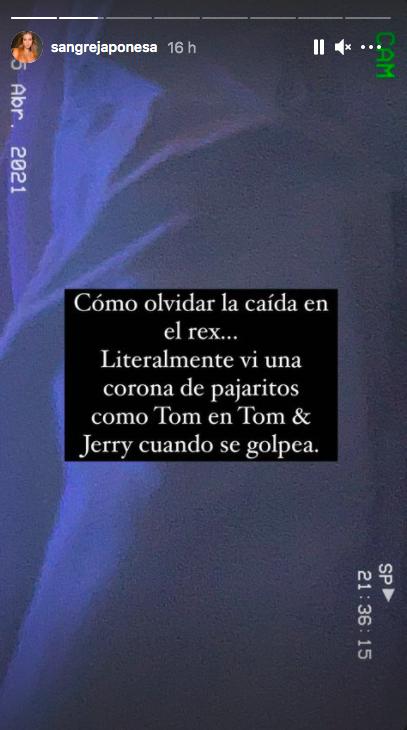 "Como olvidar la caída del Rex... literalmente vi una corona de pajaritos como Tom en Tom&Jerry cuando se golpea", escribió en stories.