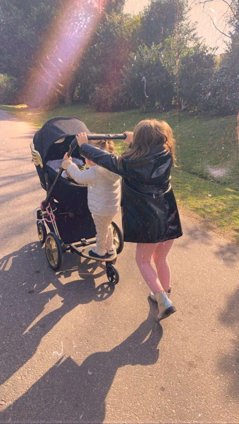 Y ahora sorprende revelando que el recién nacido ya tuvo su primer paseo.Vía stories, la trasandina compartió una hermosa fotografía donde muestra al pequeño en su coche en compañía de sus hermanitas.
