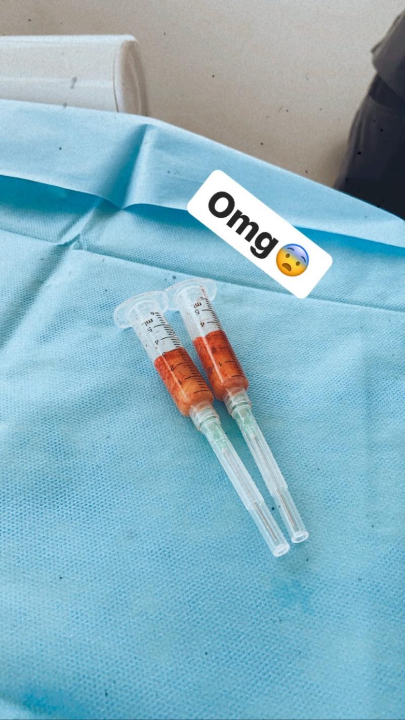 La cantante mostró vía stories la grasa que le sacaron de sus mejillas y entregó detalles del proceso.“Aún no puedo sonreír por la hinchazón jaja pero estoy playa”, escribió.