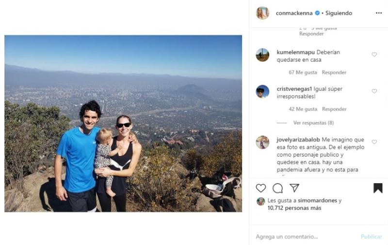 Aunque en la foto se ve que están solos los tres, muchos seguidores criticaron a la actriz Constanza Mackenna tras compartir una foto de ella, su marido y su hija en la cima del cerro Manquehue, que escalaron este viernes 1 de mayo.