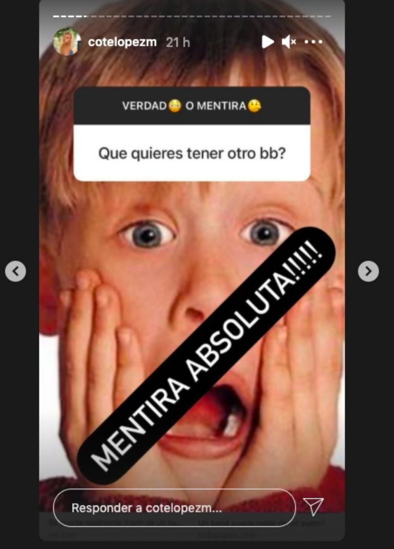Y fue uno de los usuarios de la red social, quien le consultó si es que quiere tener otro bebe, a lo que ella rápidamente respondió "mentira absoluta". Junto a su respuesta, López puso la icónica portada de la película "Mi pobre angelito", en donde Kevin McCallister aparece entre asustado e impresionado.