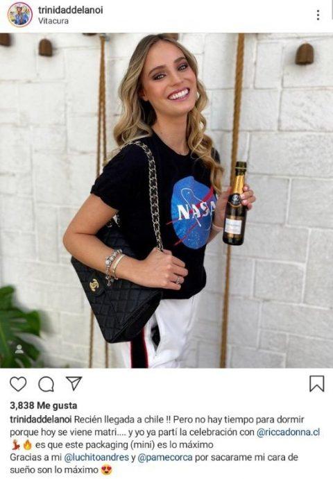 Trini de la Noi en el ojo del huracán luego de publicar en Instagram que tras su regreso a Chile asistiría un matrimonio. Usuarios no podían creer si la modelo hablaba en serio, pues la recomendación en estos momentos para evitar la propagación del COVID-19 es quedarse en casa y hacer cuarentena preventiva todos aquellos que vienen desde el extranjero.