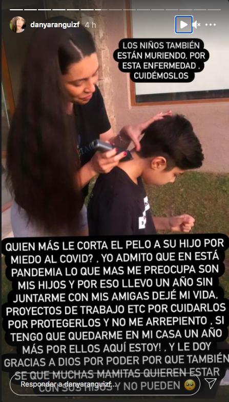 "Quién más le corta el pelo a su hijo por miedo al Covid? Yo admito que en esta pandemia lo que más me preocupa son mis hijos", escribió al comienzo.