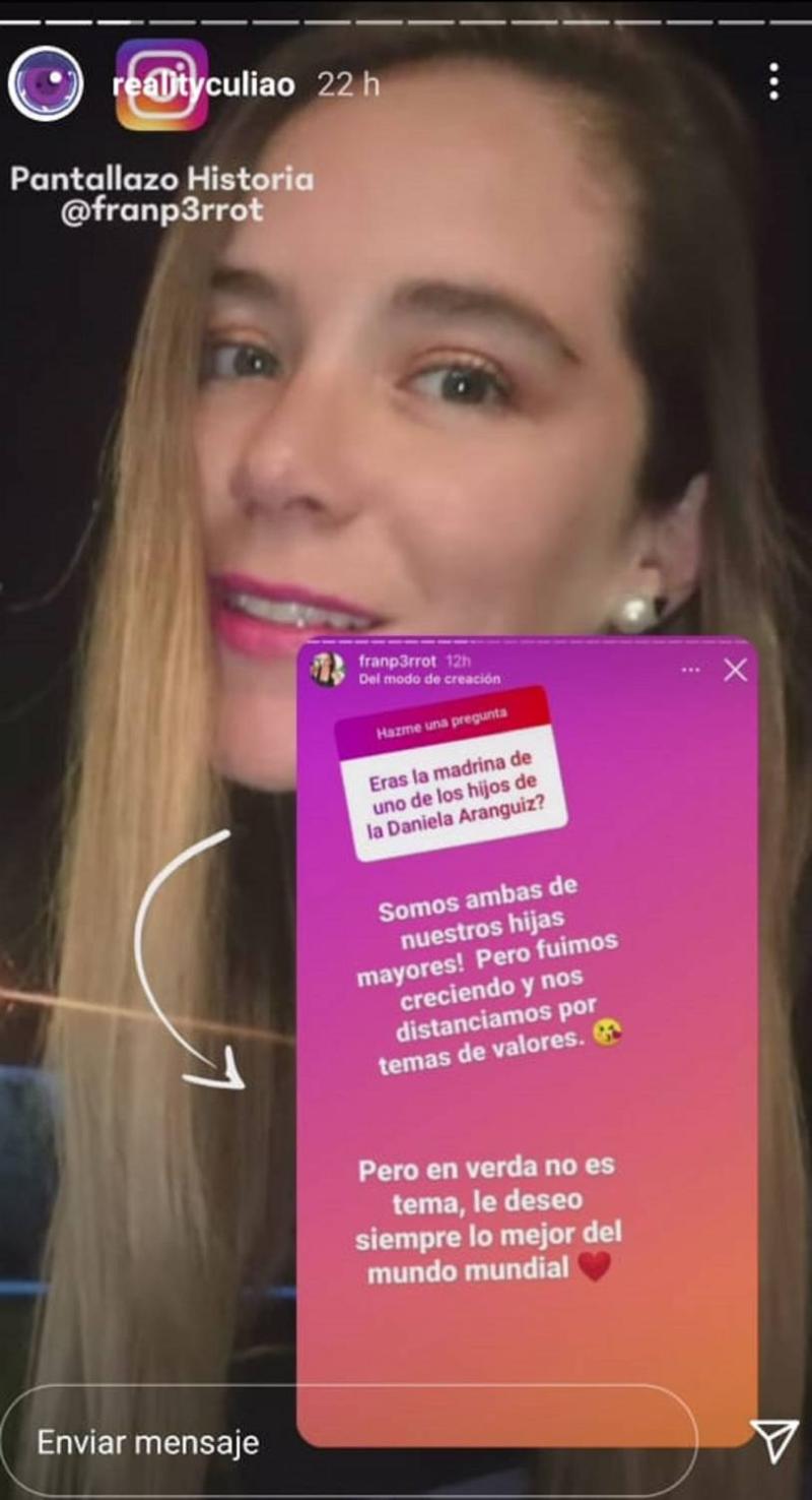 Por su parte, Francoise Perrot también utilizó su cuenta de Instagram para responder a las preguntas de sus seguidores, donde se refirió a su antigua amistad junto a Daniela Aránguiz.