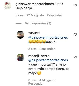 Una cibernauta le escribe a Benjamín que está "viejo", en una de las instantáneas que subió y cuyo rostro aparece bastante cerca de la cámara.