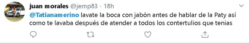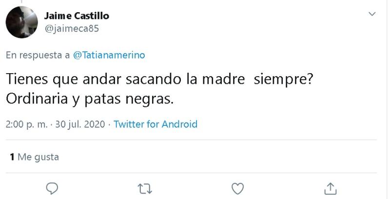 "Vieja estúpida @lamaldito. Todo porque su homosexualidad la tuvo que tener escondida y bien calladita, a pesar de que todos sabían. Habla de picá no más. Nunca pudo ser libre (sic)", fueron las palabras de Tatiana contra Maldonado.