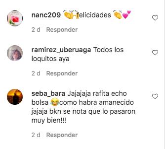"Rafita hecho bolsa! cómo habrá amanecido jajajaja", es uno de los tantos comentarios de la imagen y el enfoque de la mayoría, pues los followers de la psicóloga se tomaron para la risa las imágenes.