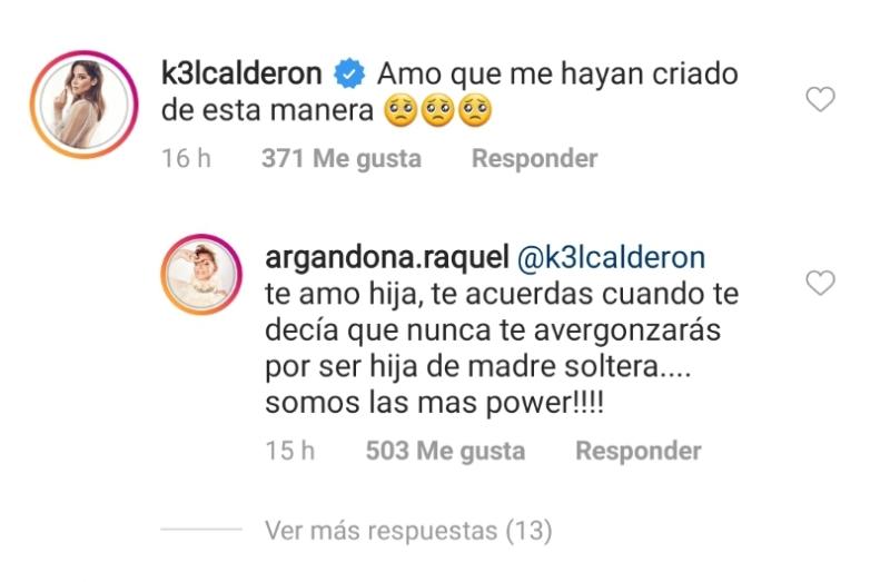 “Cacha que siempre estoy orgullosa de ti pero viendo este video se me infló un poquito el pecho”, escribió. “Amo que me hayan criado de esta manera”, puso en otro comentario que Argandoña respondió. “Te amo hija, te acuerdas cuando te decía que nunca te avergonzarás por ser hija de madre soltera.... somos las mas power!!!!”, escribió.