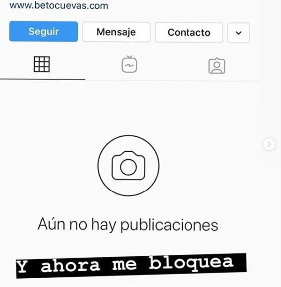Barrientos subió este pantallazo evidenciando que Beto Cuevas la bloqueó.