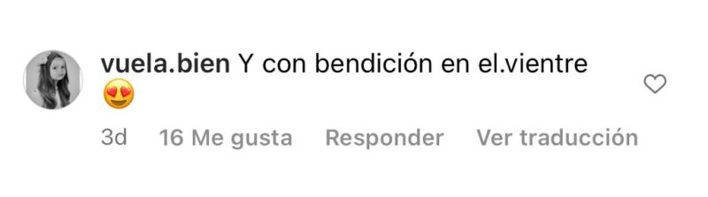 Sin embargo, hubo un comentario que no pasó desapercibido. “Y con bendición en el vientre”, indicó un usuario llamado @vuela.bien, quien recibió un “me gusta” por parte de la mismísima ex integrante de recordados espacios televisivos como “Año 0”, “Fiebre de Baile”, “Amazonas”, “Infieles” e “Intrusos” ¿Será cierto o solo un "like" equivocado?