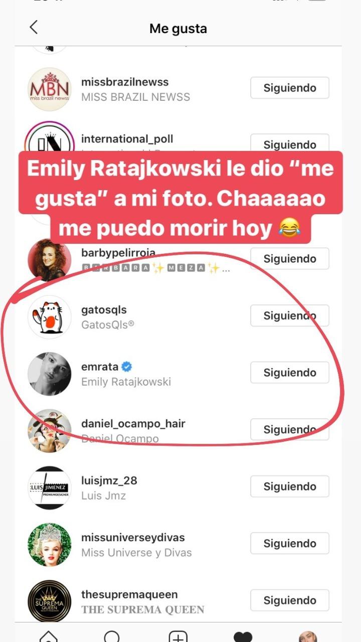 La modelo le dio like al post de Daniela Nicolás, quien mostró a sus seguidores este logro.