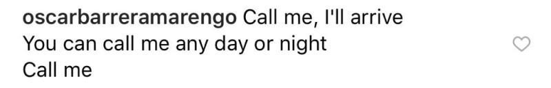 “Call me, I'll arrive. You can call me any day or night. Call me (Llámame, llegaré. Puedes llamarme cualquier dia o noche. Llámame)”, escribió Óscar en el posteo donde Cristóbal publicó el emoji de un teléfono. Esto junto a una fotografía donde luce una colorida polera en medio de un fondo totalmente negro.