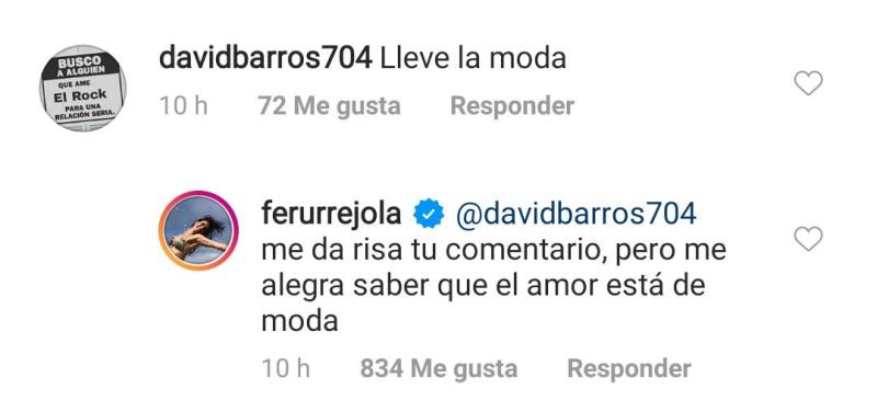 Fernanda respondió, y sacó aplausos en los comentarios que siguieron con sus palabras. "Me da risa tu comentario, pero me alegra saber que el amor está de moda", escribió.