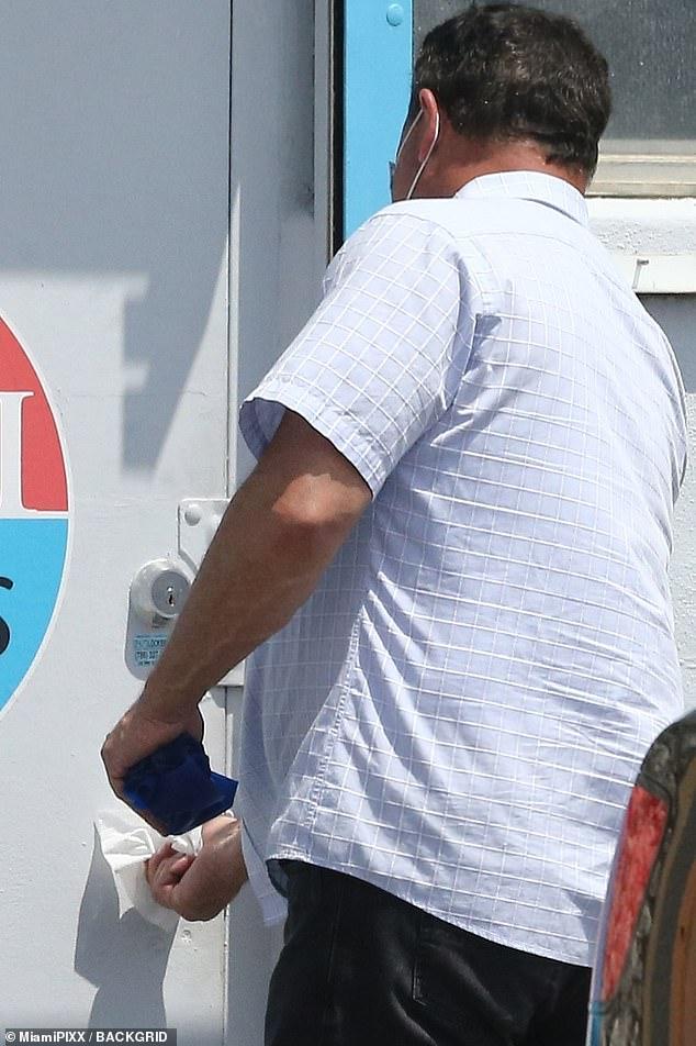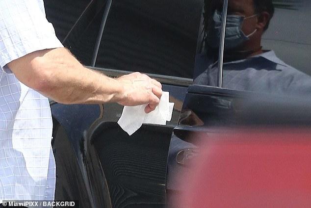 El guardaespaldas continúa con su labor de proteger a JLO del coronavirus protegiendo las llaves del gimnasio y desinfectando la puerta del auto donde viaja la celebridad...