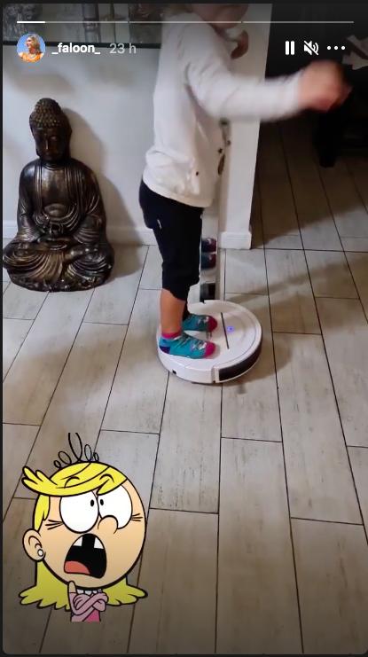 Minutos antes Faloon mostró como su hija intentaba subirse sobre la aspiradora inteligente mientras esta se encontraba en pleno funcionamiento.