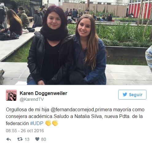 Fernanda, quien es hija del matrimonio entre Doggenweiler y su ex marido, Eugenio Cornejo, ha mostrado desde hace un tiempo su interés en la política. De hecho, es también moderadora del programa “Diálogos de Cambios”, que se realiza semanalmente en el fanpage de la agrupación.