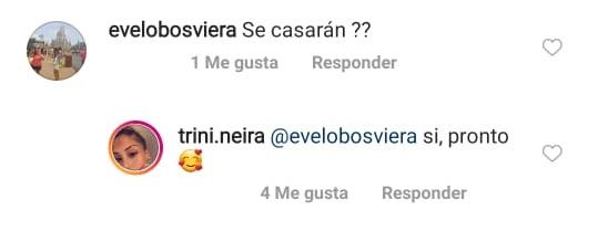 “¿Se casarán?”, preguntó una seguidora en una publicación del joven. “Sí, pronto”, contesó Trini con un emoji enamorado.