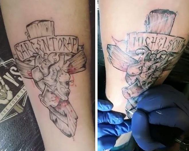 Ahora y para cubrirlo, Ignacia decidió añadir una serpiente al diseño, que pasa justo por donde está escrito el nombre del mexicano.