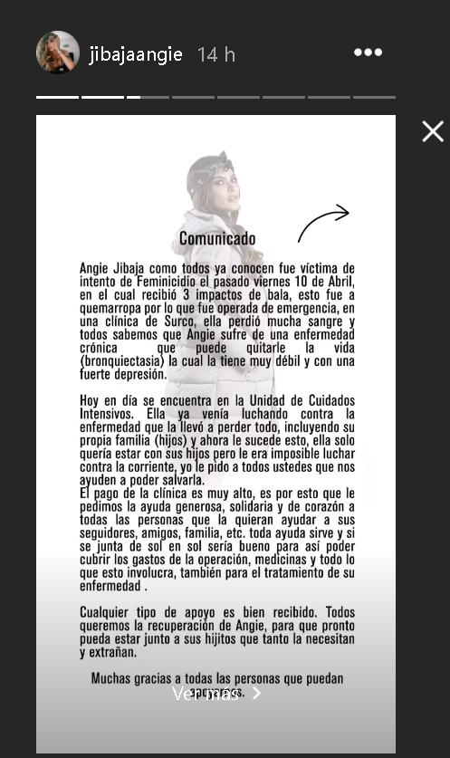 Asimismo, se hace un llamado a reunir fondos para costear la operación que debe realizarse la actriz. Se puede aportar tanto a una cuenta chilena como peruana. “Gracias infinitas a todos los que han colaborado, esperamos llegar a la meta”, dice su último post.