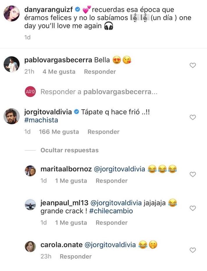 Tal como mencionamos, la publicación de Daniela Aránguiz hizo reaccionar inmediatamente al futbolista, quien le comentó que se cubriera “porque hacía frío”.