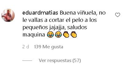 "Buena Viñuela, no le vayas a cortar el pelo a los pequeños jajaja, saludos máquina", escribió el usuario. El animador no respondió y tampoco borró el mensaje.