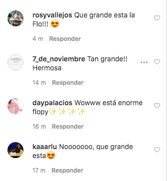 "Que grande y bella! Cuándo creció tanto", "Tan grande!! Hermosa", "Wowww está enorme flopy", fueron algunos comentarios y el enfoque de la mayoría relativos a la foto.
