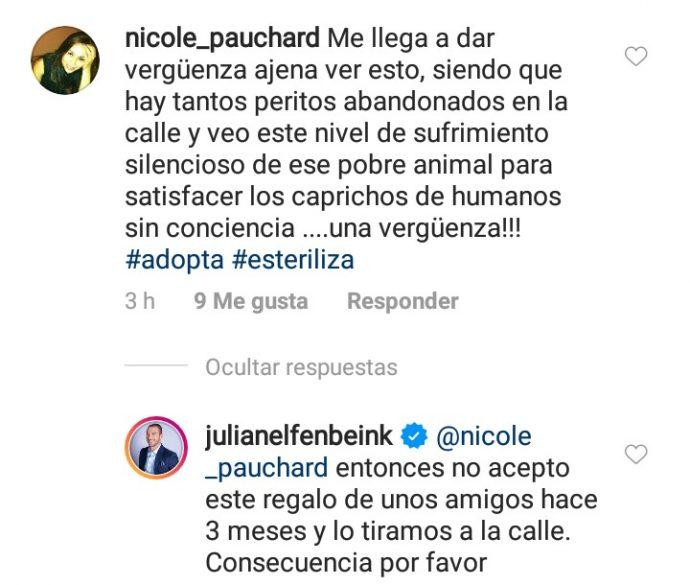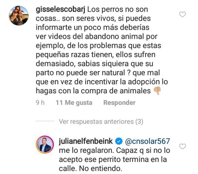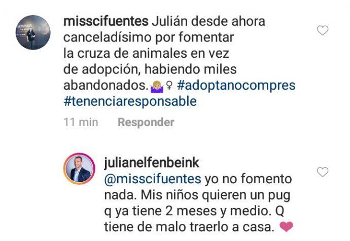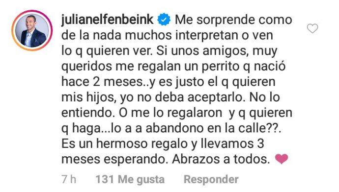 Julián respondió cada comentario expresando que le regalaron el animal, que sus hijos lo querían y que no piensa dejarlo sin hogar. "No entiendo", fue uno de sus descargos.