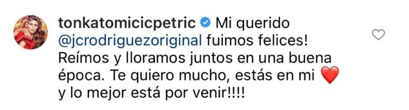 La compañera televisiva de Amaro Gómez-Pablos decidió reaccionar a las dos publicaciones de su colega. “Mi querido @jcrodriguezoriginal fuimos felices! Reímos y lloramos juntos en una buena época. Te quiero mucho, estás en mi corazón y lo mejor está por venir”, destacó la comunicadora en uno de los posteos.