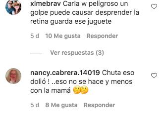 Karla permanece grabando en modo selfie el momento en que el menor le mete un juguete en el ojo con total picardía. Usuarias no se tomaron bien estas imágenes, pues consideraron una falta de respeto por parte del menor este hecho y además criticaron a la animadora por ser un rostro público y difundir cosas así.