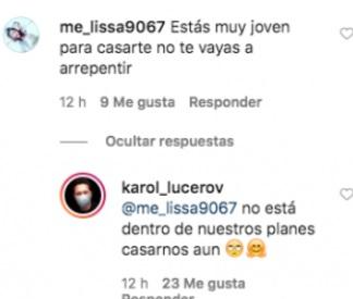 "No está dentro de nuestros planes casarnos aún", respondió Karol Lucero, sin descartar que a futuro esto pueda ocurrir.