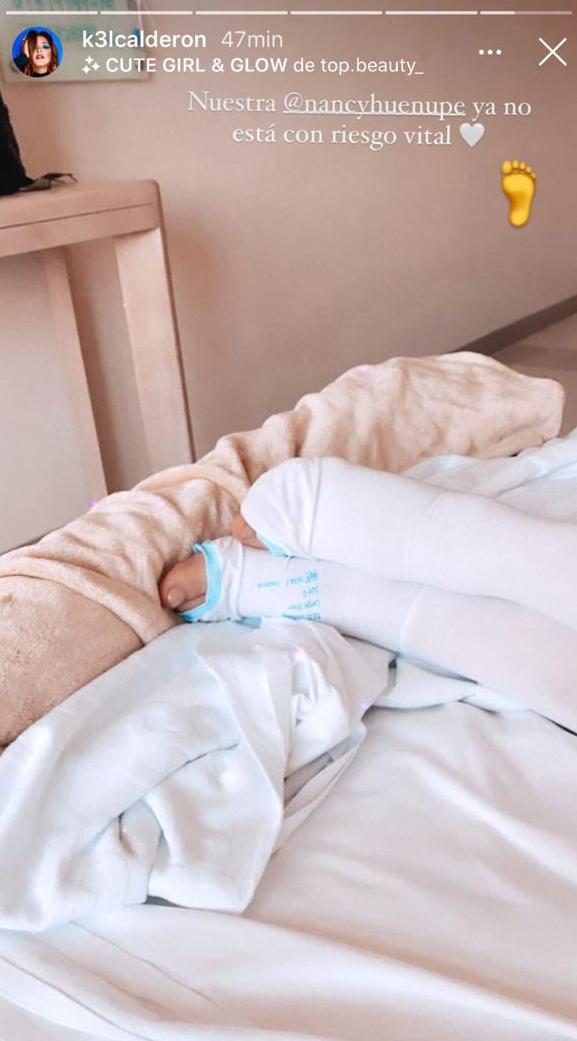 En historias de Instagram la futura abogada mostró una foto de los pies de Nancy junto al siguiente mensaje: "Nuestra Nancy ya no está con riesgo vital".