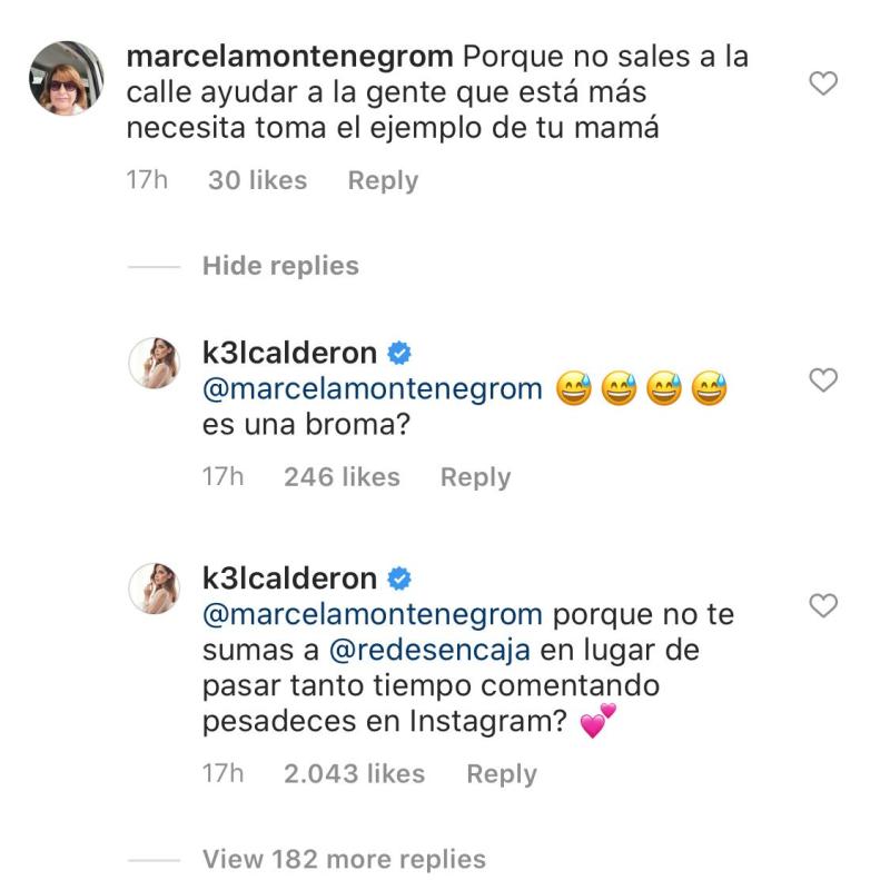 Como era de esperar Calderón respondió a la mujer escribiendo: "Es una broma?", para luego agregar que "por qué no te sumas a @redesencaja en lugar de pasar tanto tiempo comentando pesadeces en instagram?", causando los aplausos de sus seguidores.