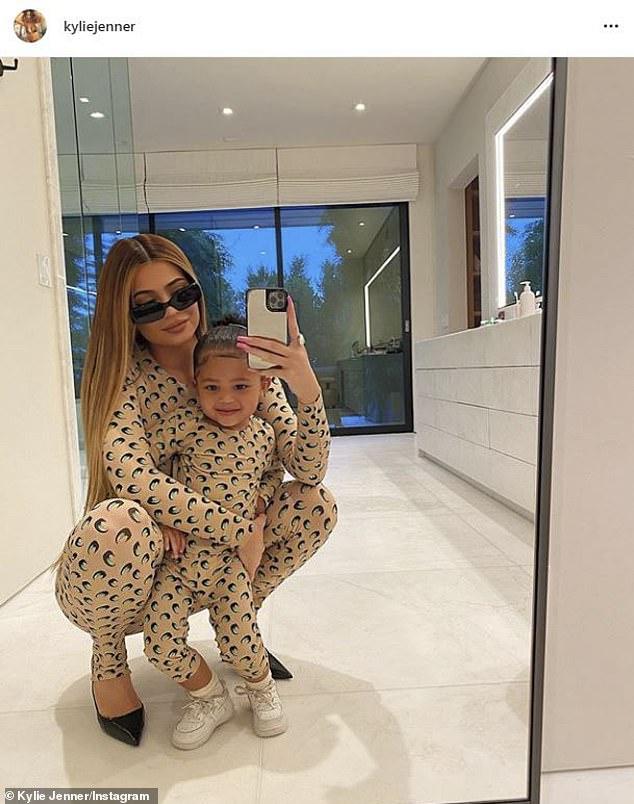 "Estoy en el día 8. Mi embarazo me preparó para esto. No dejé la casa por nada", expresó en Instagram junto a una foto en compañía de Stormi y haciendo matchy macthy.