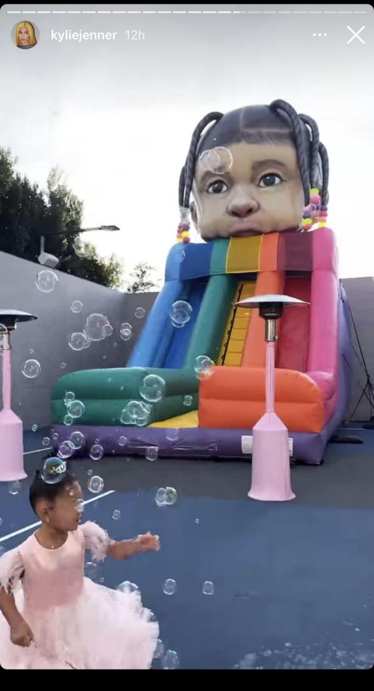 La celebración incluía una gran cantidad de globos que estaban repartidos por toda la casa, un carrito de dulces, decoración de galletas para que los invitados hicieran las suyas, juegos inflables con la cara de Stormi, una carroza al más puro estilo Cenicienta y de regalo polerones de la celebrada para los invitados.
