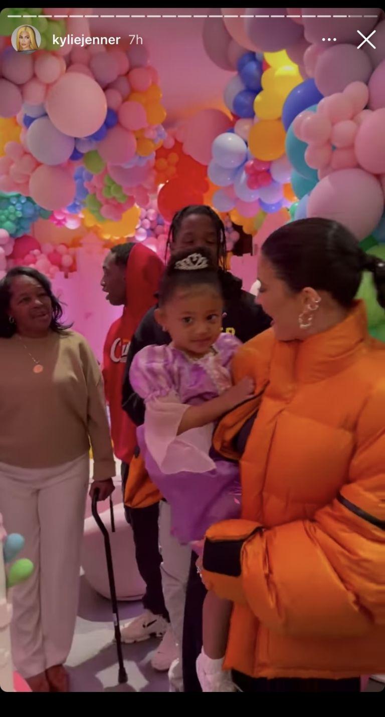 Kendall Jenner, Kim Kardashian, Khloé Kardashian, Kourtney Kardashian, la abuela de Stormi, Kris Jenner y el papá de la pequeña, Travis Scott, fueron los invitados a la fiesta.