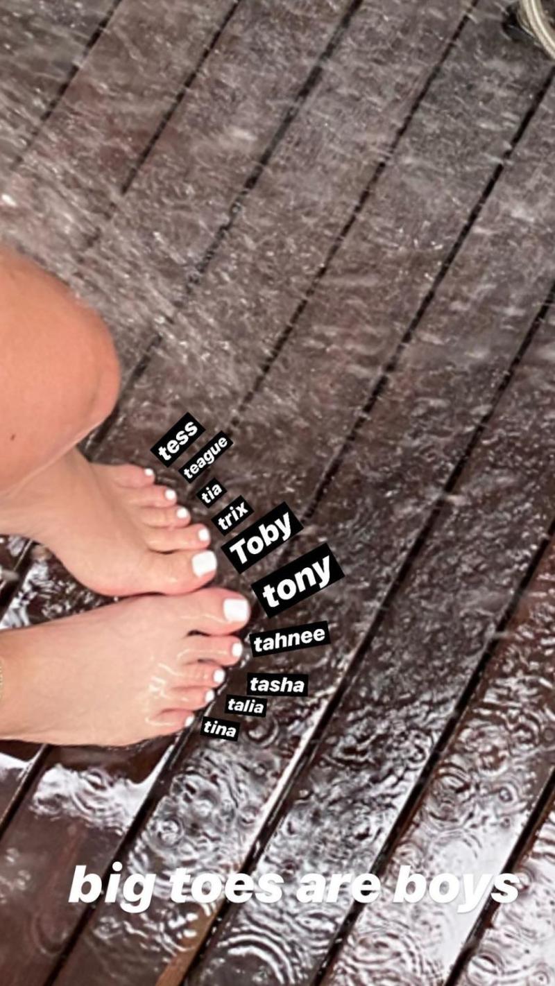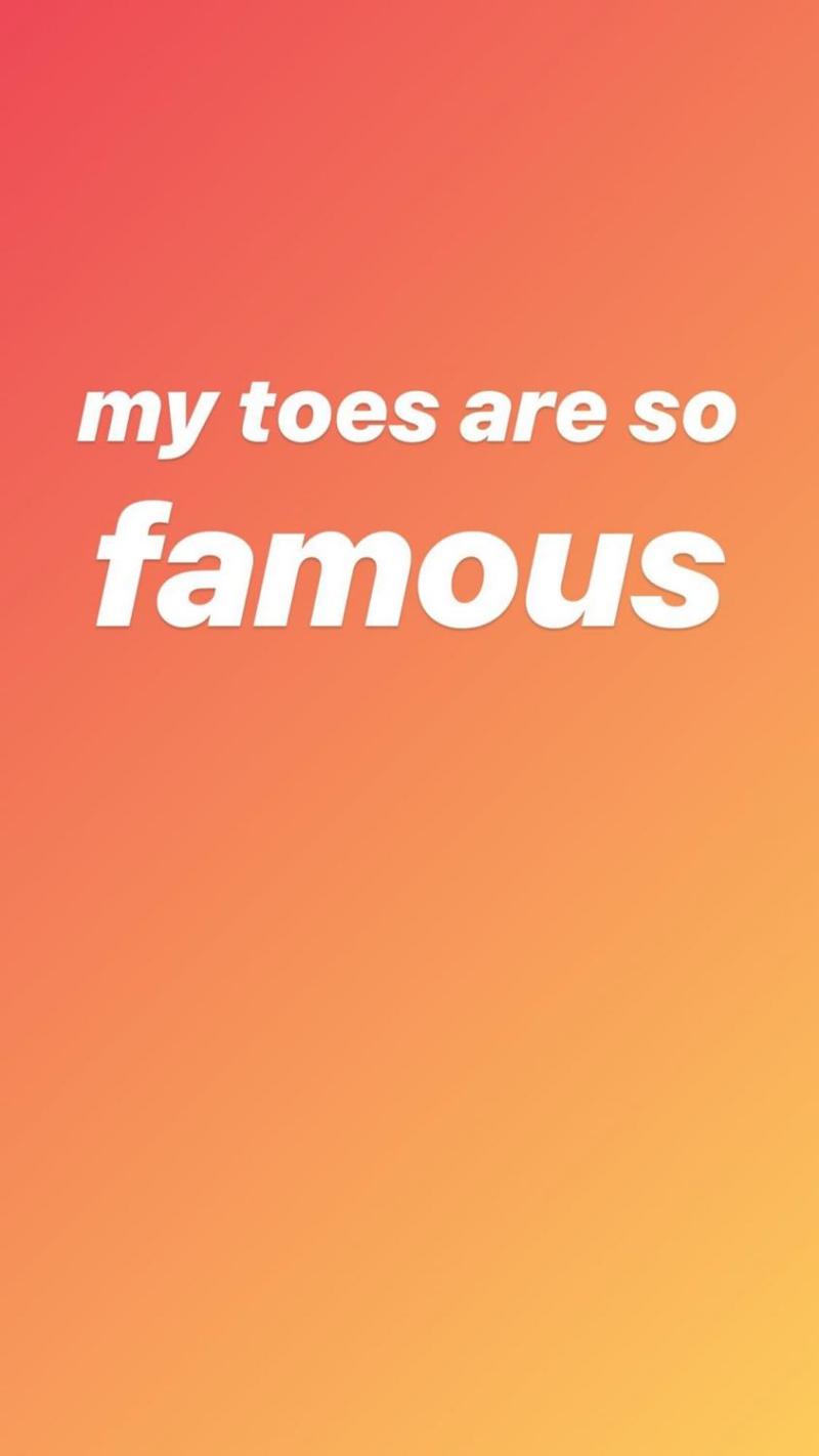 “Todos quieren verme por mis dedos de los pies. Por cierto, tengo pies lindos y me rompí este dedo en la escuela secundaria, y no hay nada que puedas hacer con un dedo roto, así que solo tenía que sanar cómo quería sanar”, continúo luego en stories.
