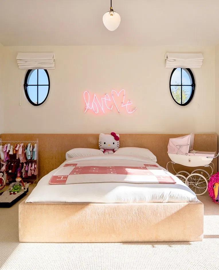 Por estos días la niña pasa la cuarentena junto a sus padres en la mega mansión que se compró su madre en Hidden Hills de California, la cual cuenta con una piscina al aire libre, un cine propio instalaciones tipo resort.