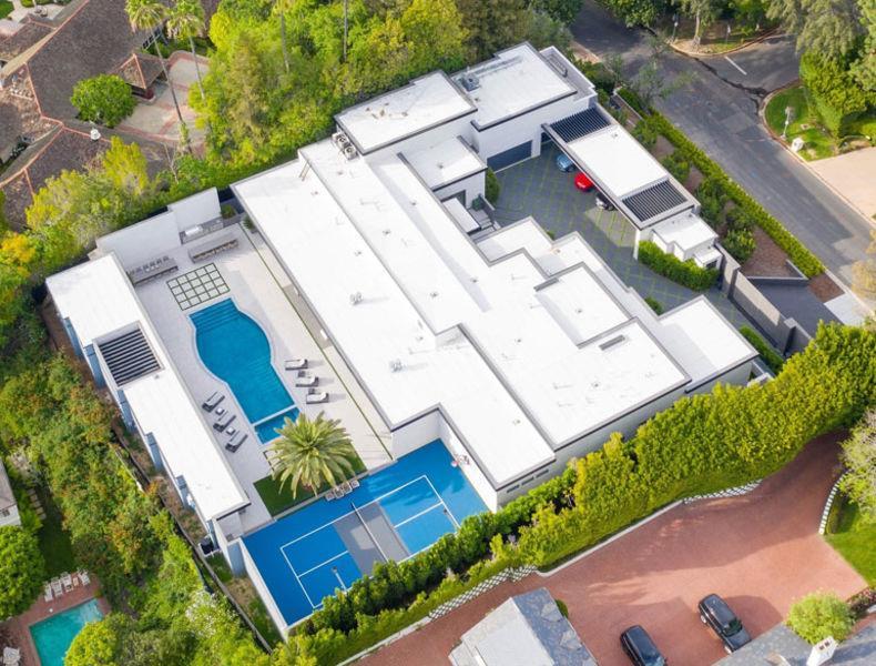 El inmueble cuenta con 1.800 m2 de espacio habitable, tiene siete dormitorios y 14 baños. Entre las excentricidades están una sale de proyección al aire libre, un bar, sala de juegos, gimnasio, cancha deportiva y eterna piscina.