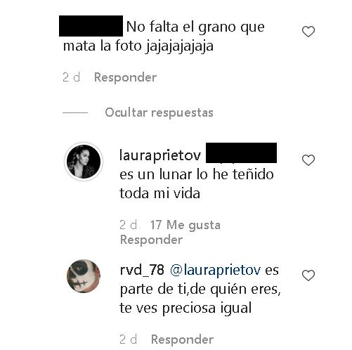 Frente a esto, sus seguidores la respaldaron y le sugirieron n que ignorara este tipo de opiniones. “Es parte de ti, de quién eres, te ves preciosa igual”, escribió un usuario. “Tengo el mismo lunar que tú! Y me han molestado siempre por él...”, agregó otra persona.