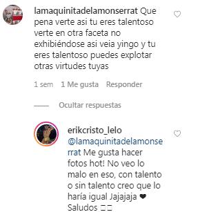 En la plataforma luce su día a día y osadas fotos que han generado todo tipo de comentarios, que hoy Erik decide responder.