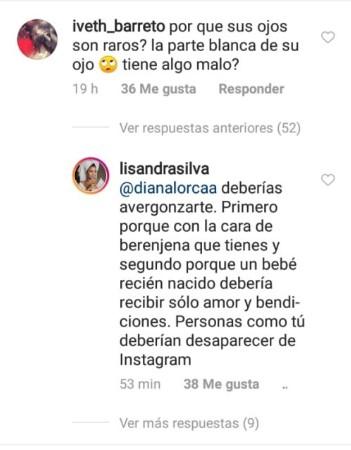 Al principio Lisandra contestó sin enojarse. "Cuando pasan por el canal en un parto normal se le pueden romper algunos vasos sanguíneos. Es lo que le pasó a Noah, pero nada serio, en unas semanas desaparecerán", explicó, pero después criticaron el aspecto de su pequeño, y eso la hizo sacar las garras.