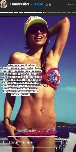 Lisandra Silva muestra foto de su cuerpo "al borde de la anorexia"