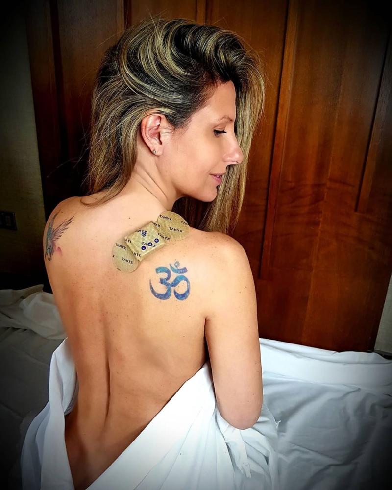 “Les tengo un dato increíble para esos dolores musculares. Yo, al estar todo el día sentada frente al computador, terminaba con un dolor fuertísimo en el cuello, los hombros y la espalda. Ahora, todas las noches durante 20 minutos ocupo mi parche y despierto como nueva. Se los aconsejo 100%”, escribió la figura televisiva.