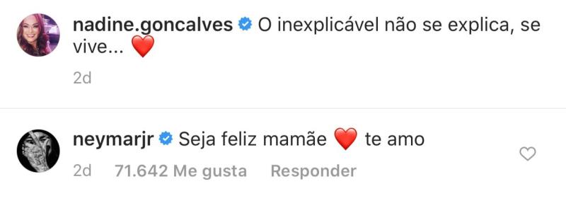 Pese a las críticas, el astro brasileño apoyó incondicionalmente a su progenitora y le escribió en esta publicación: “Sea feliz, mamá. Te amo”.